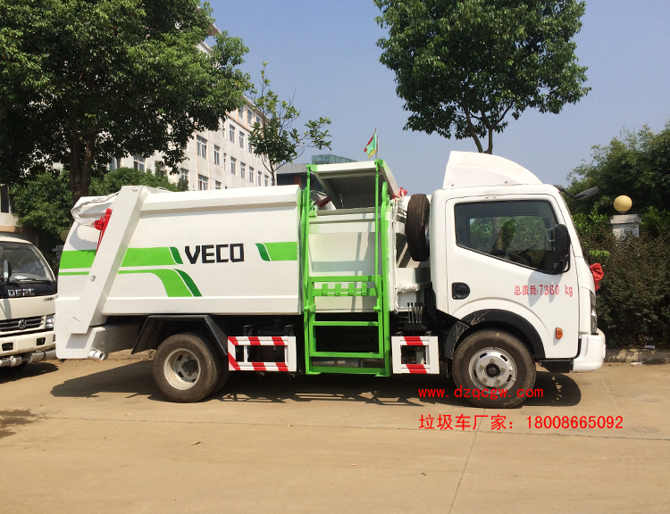 底盤說明:東風凱普特國五單排可翻轉駕駛室,多種可選國五發動機,5檔變速箱,前橋2噸,后橋4噸,7.00-16輪胎,ABS,方向助力,氣剎。 組成部分:國內知名品牌東風原裝底盤(全國聯保)、箱體(密封式)、取力器、多路換向閥、液壓系統、操作系統等組成。 車廂:采用16號低合金槽鋼與優質碳鋼鋼板全密封焊接而成,用8組連接板與專用車底盤大梁連成一體,設計美觀、結構合理,裝卸方便。 進料結構:壓縮垃圾站將垃圾壓縮成塊后將垃圾塊垂直舉起,并打開壓縮箱排泄門,這時垃圾車箱體后門向上旋轉開啟,垃圾車后門與壓縮箱后門對接,之后垃圾塊被壓縮箱內的推板水平推進到垃圾車箱體內,完成垃圾裝載后關閉垃圾車后門,將垃圾運到垃圾處理地進行傾卸。 卸料結構:系用箱卸料,由兩只液壓油缸直接舉升車廂進行卸料,箱底與地面夾角不小于45度,以實現垃圾依靠自重能自行卸下的專用自卸運輸車。 液壓系統:由油箱、油泵、多路換向閥、液壓缸、濾油器和管路組成,該系統能實現裝卸垃圾的各種專用功能。 操作系統:通過該系統可以實現各功能的轉換。通過操縱多路換向閥的手柄可完成裝料和卸料工作。(在操作多路換向閥時應掛上取力器帶動油泵工作) 主要特點:垃圾收集方式簡便、高效.環保性好(不產生二次污染),整車利用效率高,質量可靠,故障率低,維護方便,運行費用低等特點。 |