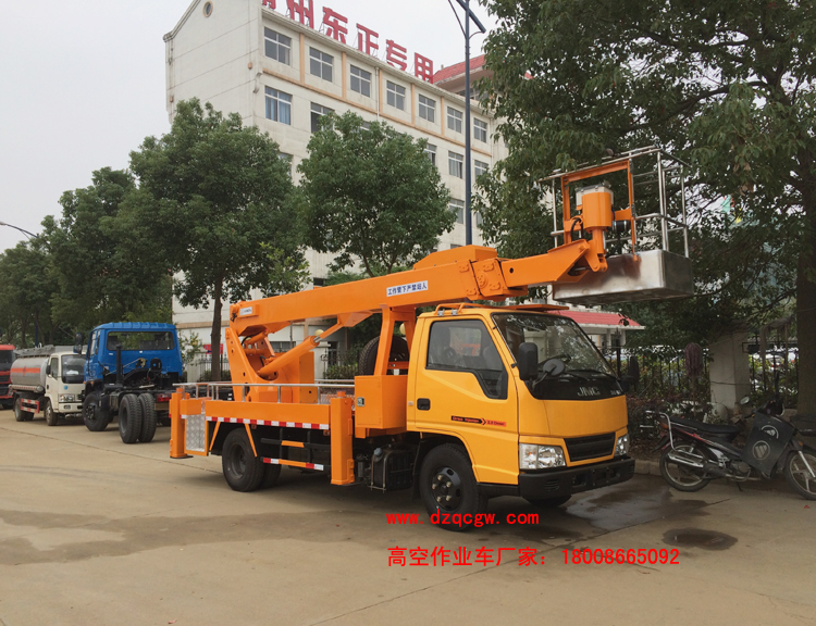 公司江鈴單排國五17米高空作業(yè)車出廠,該車采用江鈴順達(dá)單排駕駛室,3360mm軸距,江鈴115馬力柴油國五發(fā)動機(jī),五檔變速箱,前橋1.5噸,后橋3噸,油,帶排氣制動,7.00R16LT鋼絲胎。