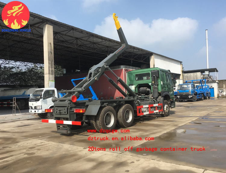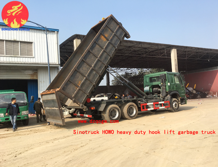 重汽豪沃重型勾臂垃圾車已調(diào)試并裝運完畢,等待船期,即日準備發(fā)往港口。