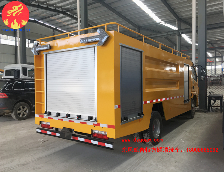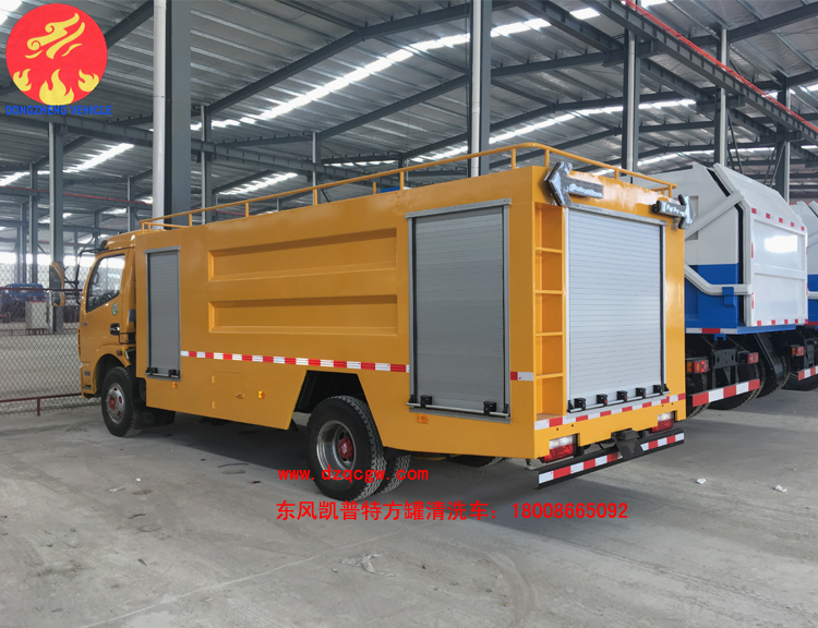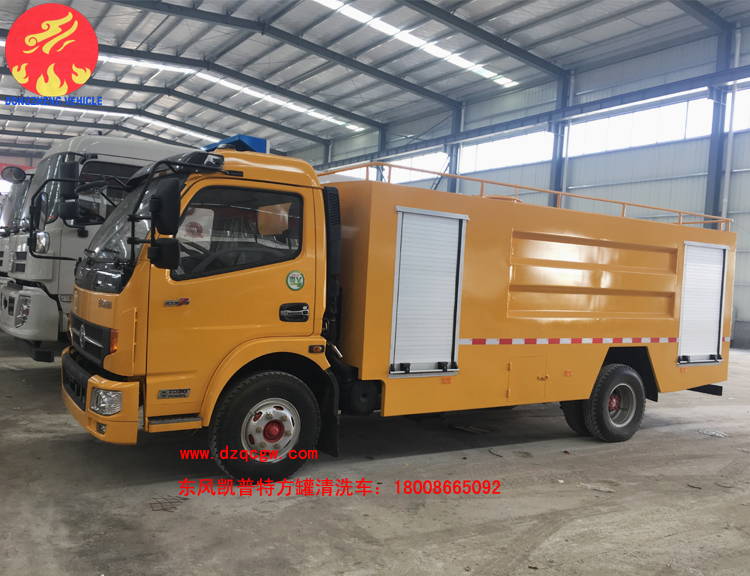 國五東風凱普特K7清洗車出廠,區別于以往的清洗車,該車型的罐體為方罐,配備天津雙耀高壓清洗泵,流量為170L/min。采用東風凱普特K7國五底盤,3800mm軸距,康機141馬力發動機,鋼絲胎帶ABS。罐體有效容積為6個方。