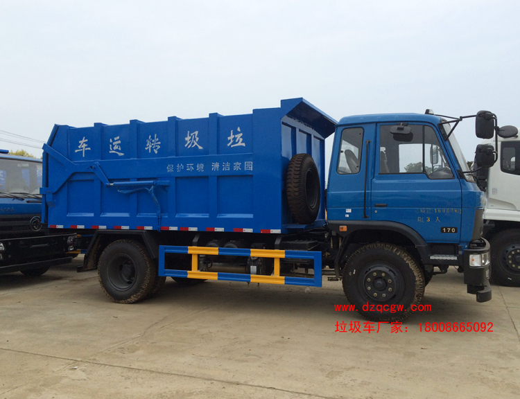 底盤說明:東風145或153國四駕駛室,采用3950mm或4500mm軸距,對應外形尺寸6850mm和7800mm,玉柴或康明斯國四發動機,250mm大梁,東風6檔變速箱,前橋3.6噸,后橋9噸,9.00-20輪胎。 組成部分:國內知名品牌東風原裝底盤(全國聯保)、箱體(密封式)、取力器、多路換向閥、液壓系統、操作系統等組成。 車廂:采用16號低合金槽鋼與優質碳鋼鋼板全密封焊接而成,用8組連接板與專用車底盤大梁連成一體,設計美觀、結構合理,裝卸方便。 進料結構:壓縮垃圾站將垃圾壓縮成塊后將垃圾塊垂直舉起,并打開壓縮箱排泄門,這時垃圾車箱體后門向上旋轉開啟,垃圾車后門與壓縮箱后門對接,之后垃圾塊被壓縮箱內的推板水平推進到垃圾車箱體內,完成垃圾裝載后關閉垃圾車后門,將垃圾運到垃圾處理地進行傾卸。 卸料結構:系用箱卸料,由兩只液壓油缸直接舉升車廂進行卸料,箱底與地面夾角不小于45度,以實現垃圾依靠自重能自行卸下的專用自卸運輸車。 液壓系統:由油箱、油泵、多路換向閥、液壓缸、濾油器和管路組成,該系統能實現裝卸垃圾的各種專用功能。 操作系統:通過該系統可以實現各功能的轉換。通過操縱多路換向閥的手柄可完成裝料和卸料工作。(在操作多路換向閥時應掛上取力器帶動油泵工作) 主要特點:垃圾收集方式簡便、高效.環保性好(不產生二次污染),整車利用效率高,質量可靠,故障率低,維護方便,運行費用低等特點。 |