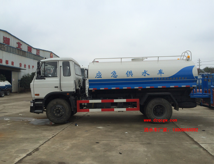 底盤說明:東風153G型豪華駕駛室,電動玻璃,軸距3950,4500,4700mm,六檔/陜齒小八檔變速箱,前橋3.6/5噸,后橋8/9/10噸,250雙層直通梁,9.00-20/10.00-20尼龍胎。外形長8600,8400,7500與軸距4700,4500,3950一一對應。罐體有效容積:9.45立方米。帶免征。 專用功能:該多功能灑水車適合于各種路面的灑水、噴霧、降溫、除塵、沖洗塵埃臟物,亦可用于園林綠化、市政環衛、路面養護及應急消防、運輸飲用水等。專用部分由罐體、水泵、球閥、輸水管道、灑水裝置等部件組成。水泵、取力箱、球閥均為國家定型產品,具有性能良好,工作可靠、壓力高、流量大、油耗低等特點。 改裝部分:標配前沖、后灑、側噴、工作平臺、綠化高炮、自流閥、消防接口,輸水管3米2根,8噸以上罐體帶高位花灑2個,億豐泵或金龍泵,控制方式為手動。選裝氣動閥門控制;高位花灑,大鴨嘴,藥盤,罐體側面加裝萬向可調節噴頭,罐體后部壓塵噴灑裝置,兩個圓警燈或長警燈,LED箭頭燈,泵可選裝威龍泵或農藥噴霧裝置。 |