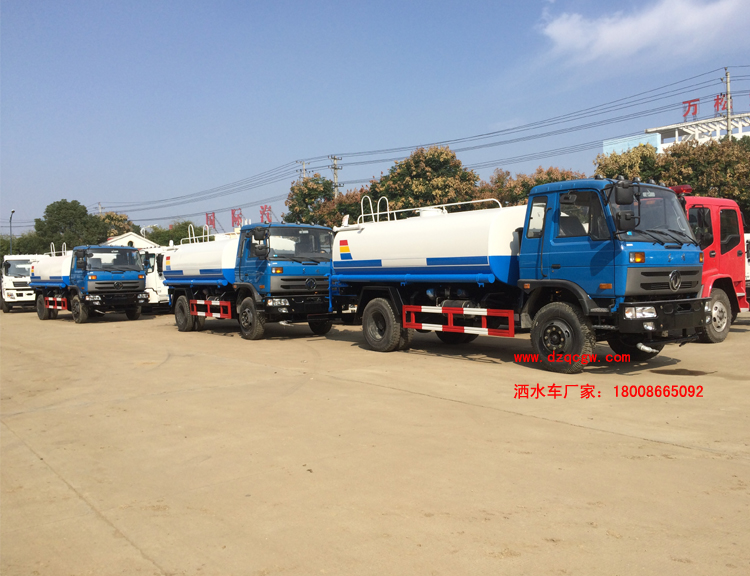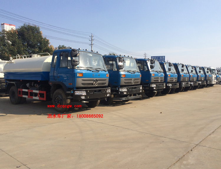 底盤說明:東風153單排翻轉車身,軸距3950,4500mm,朝柴或康機國四發動機,前橋3.6噸,后橋6噸,9.00-20鋼絲胎,方向助力,斷氣剎,6檔變速箱。外形長8500,7500mm與軸距4500,3950mm一一對應。罐體有效容積:11.8立方米。運輸介質:丙酮水溶液。帶免征。 專用功能:該多功能灑水車適合于各種路面的灑水、噴霧、降溫、除塵、沖洗塵埃臟物,亦可用于園林綠化、市政環衛、路面養護及應急消防、運輸飲用水等。專用部分由罐體、水泵、球閥、輸水管道、灑水裝置等部件組成。水泵、取力箱、球閥均為國家定型產品,具有性能良好,工作可靠、壓力高、流量大、油耗低等特點。 改裝部分:標配前沖、后灑、側噴、工作平臺、綠化高炮、自流閥、消防接口,輸水管3米2根,8噸以上罐體帶高位花灑2個,億豐泵或金龍泵,控制方式為手動。選裝氣動閥門控制;高位花灑,大鴨嘴,藥盤,罐體側面加裝萬向可調節噴頭,罐體后部壓塵噴灑裝置,兩個圓警燈或長警燈,LED箭頭燈,泵可選裝威龍泵或農藥噴霧裝置。 |